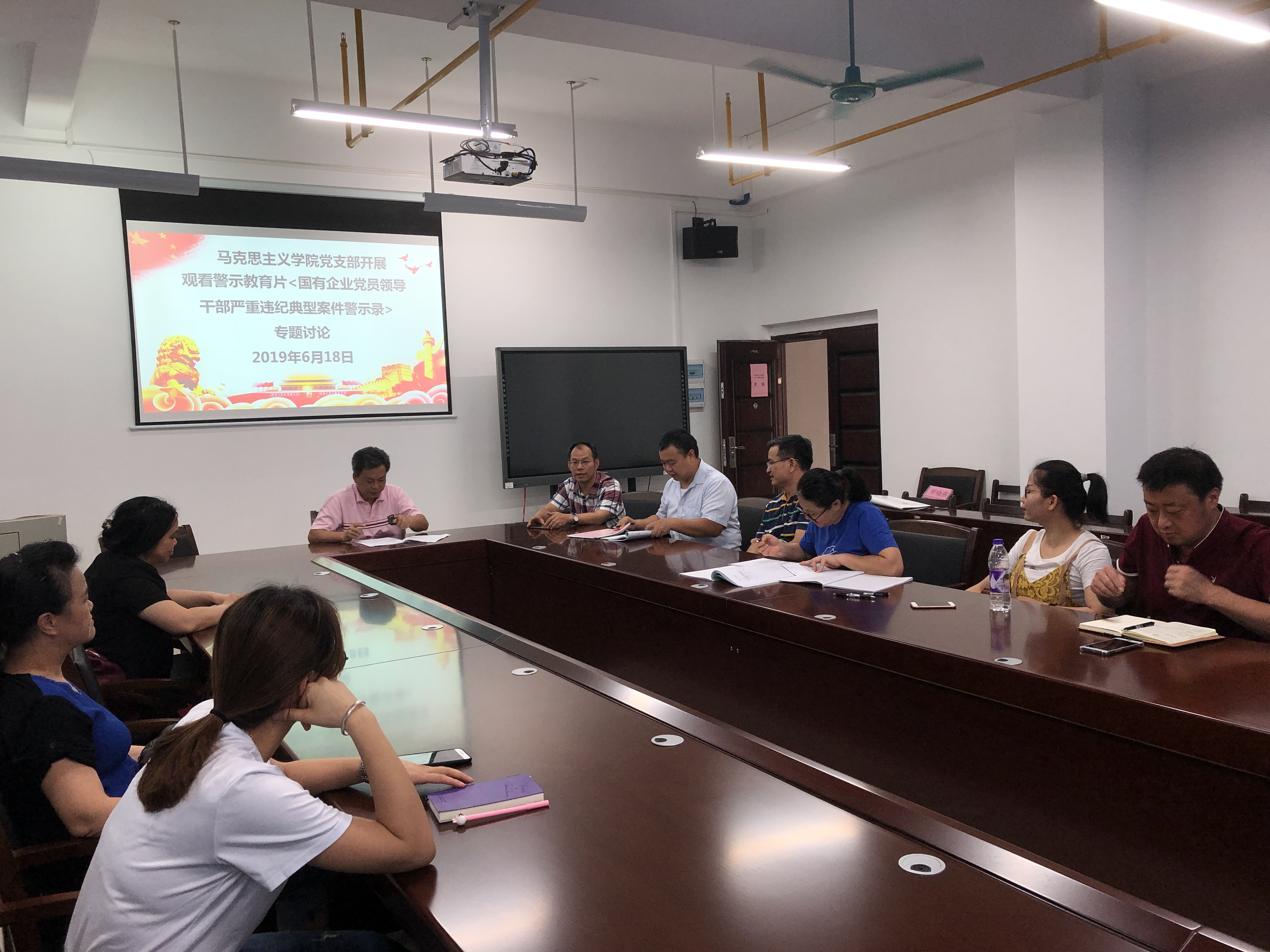 马克思主义学院党支部集中观看《国有企业党员领导干部严重违纪典型案例警示录》并开展专题讨论