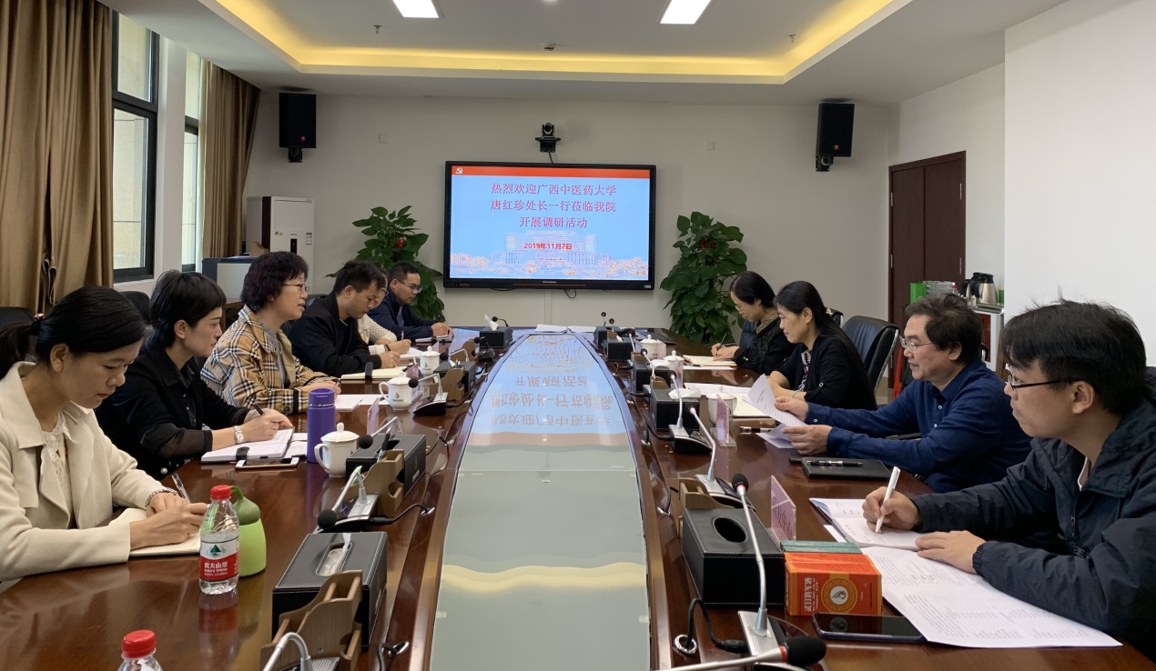 学校科技处党支部、成社处党支部一行8人,于11月6日、7日下午分别前往taptap点点体育附属瑞康医院、广西国际壮医医院开展“不忘初心、牢记使命”主题教育调研。