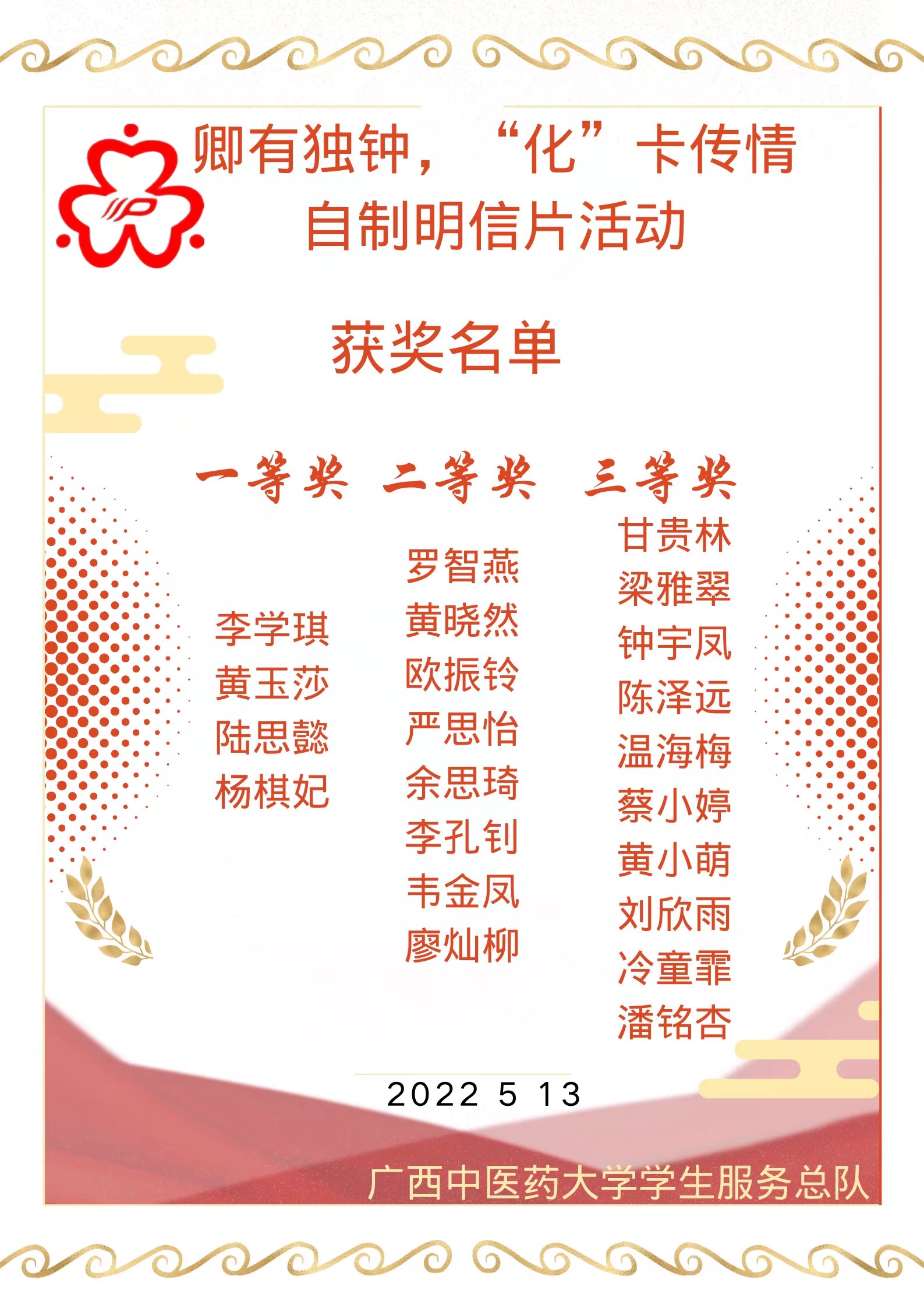 为丰富大学生在校学习生活,激发学生的创作灵感与设计热情,营造和谐健康的校园文化氛围 ,点点体育于2022年5月份开展了由taptap点点体育学生资助管理中心主办,广西中医药大学学生服务总队承办的“卿有独钟,‘化’卡传情”主题自制明信片活动。