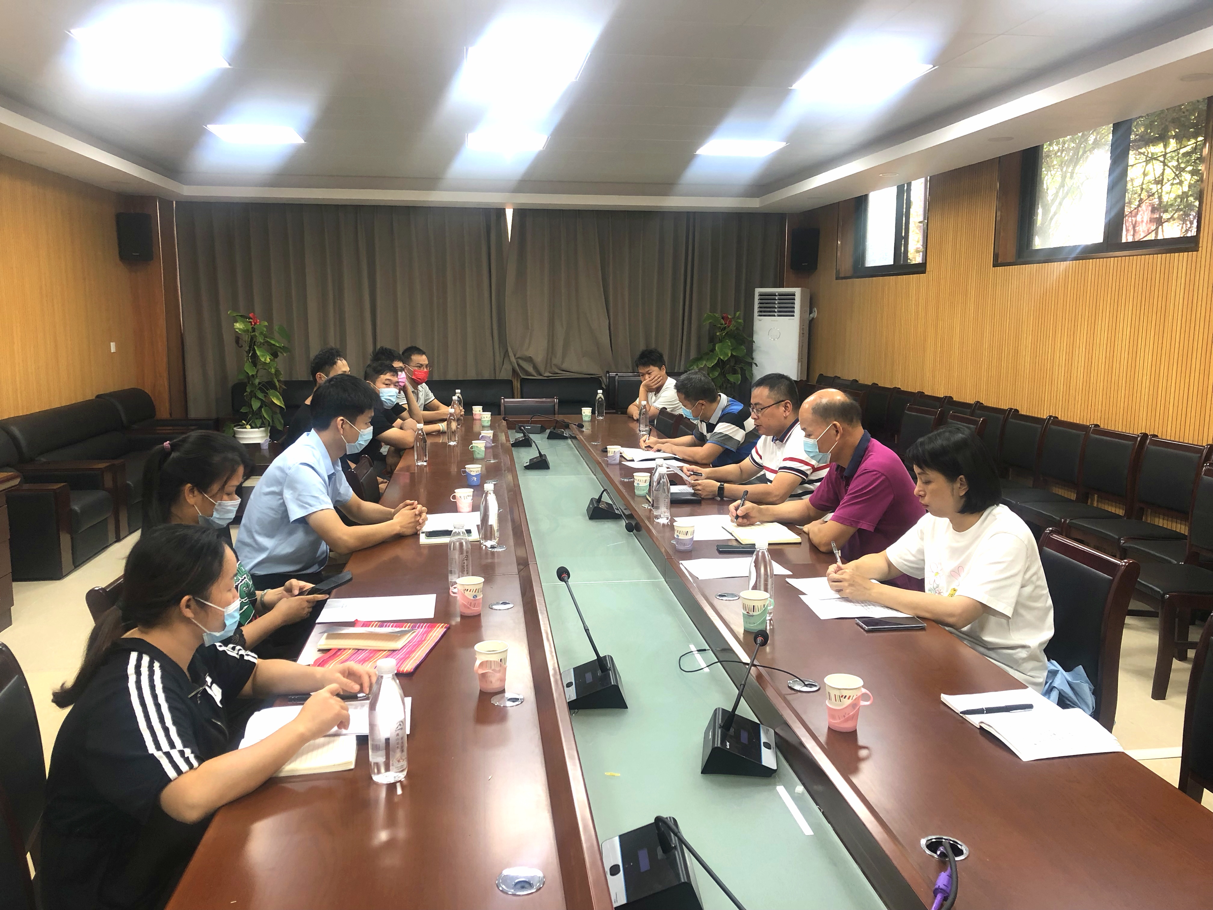 2022年9月6日下午, 后勤处在后勤楼一楼会实时组织召开校内食堂、商铺食品安全工作会议,后勤处领导、资产经营有限公司领导、膳食科相关人员、南宁康惠餐饮投资有限公司驻场经理、广西南宁左右逢源餐饮管理有限公司(五明食堂一楼、二楼)驻场经理、校内餐饮商铺代表等参加会议。会议由后勤处副处长叶绘晟主持。