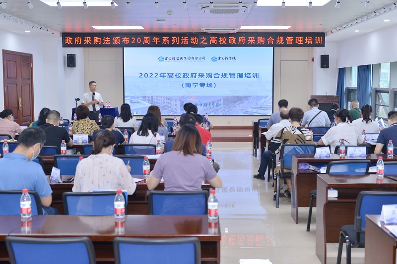 此次培训的内容有:高校招标采购的特点与难点;高校做好招标采购风险防控的关键点;高校常见采购品目的采购文件案例分析;广西最新政府采购政策法规操作实务等等。