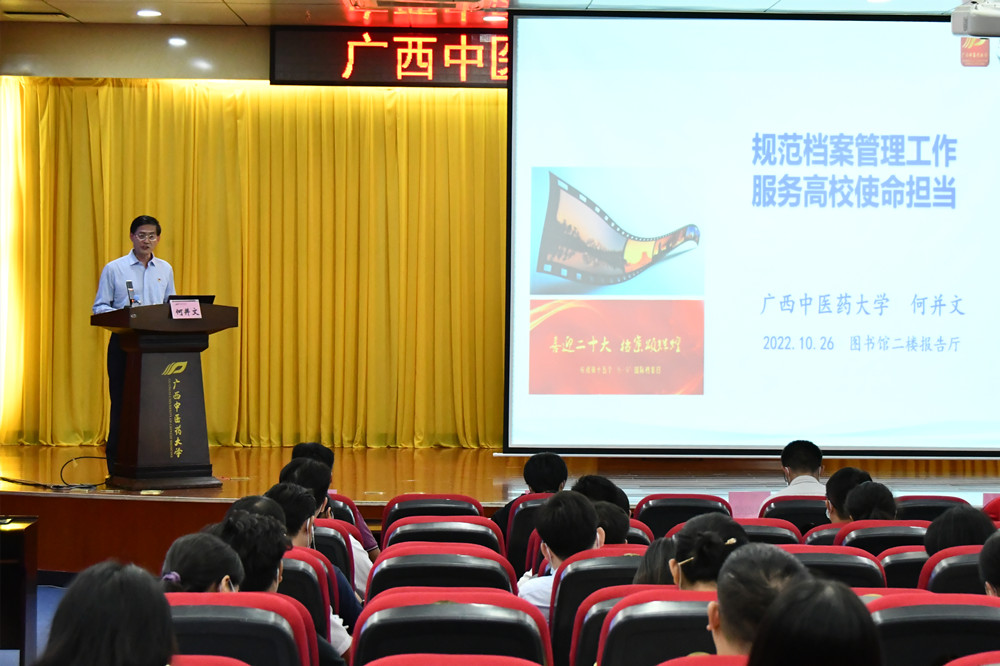 何并文以《规范档案管理 服务高校使命担当》为主题,从“什么是档案”、“谁是档案管理员”、“为什么要归档”三个方面,围绕高校档案管理的重要意义、历史经纬、法律法规、规范要求、信息技术等进行阐述,并客观分析了点点体育档案工作的现状、问题与对策,要求大家进一步提高对档案工作的认识,切实担负起档案工作责任,共同推动学校档案工作的科学化、规范化、标准化建设。