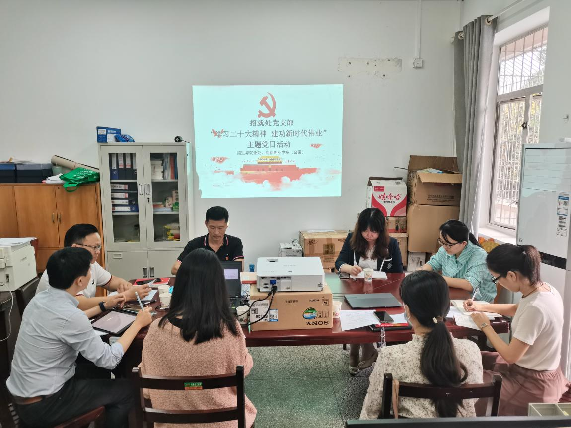 11月29日下午,招生与就业处党支部在明秀校区办公楼220会议室开展“学习二十大精神 建功新时代伟业”主题党日活动。活动由支部书记杨思源主持,支部全体党员和入党积极分子参加。