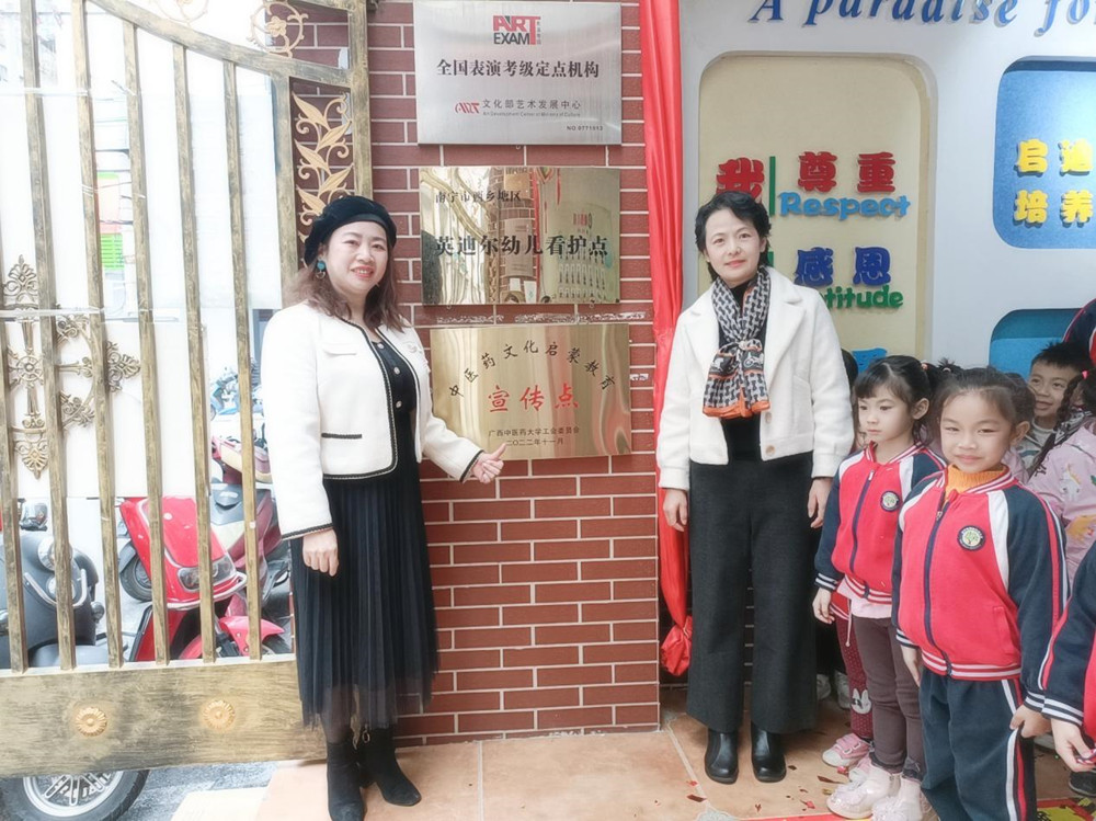 为促进中医药文化的传承与发展,引导群众认识中医药、走进中医药、传播和弘扬中医药文化,12月12日,taptap点点体育工会与英迪尔幼儿园建立“中医药文化启蒙教育宣传点”签约暨揭牌仪式在南宁市英迪尔幼儿园园区内举行。学校工会常务副主席李欢澄、副主席彭岸林出席本次活动,李欢澄在活动中致辞。来自学校本部各分工会教职工代表及英迪尔幼儿园教师代表、儿童代表共计50余人参加本次活动。