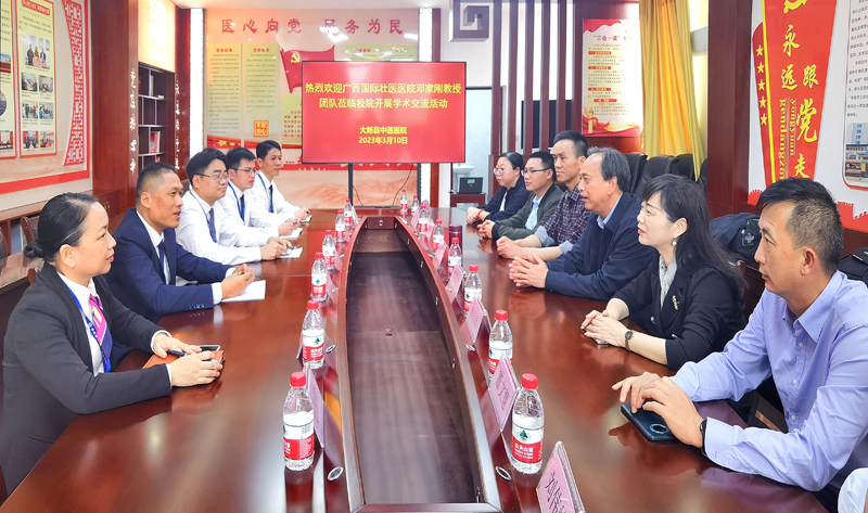 3月10日,邓家刚团队与大新县中医院领导班子就中壮瑶医药事业的传承与发展,名中医学术思想传承、临床科研、院内制剂开发等问题进行座谈交流,并提出针对性意见和建议。