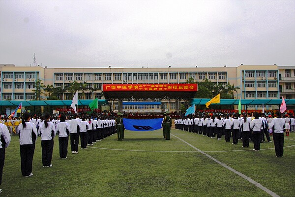2009年11月20日上午,广西中医学院三十一届大学生、十七届教职工田径运动会在学院运动场隆重开幕。学院院长朱华、副院长李培春、副院长冷静、学院工会主席陈雪斌以及相关部门领导出席了开幕式。