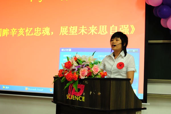 为了纪念辛亥革命100周年,弘扬自律、自强的精神,5月13日晚,一场主题为“百年辛亥,铸就青春梦想”的演讲比赛在赛阶103教室举行。11名参赛选手激情洋溢、声情并茂的演讲赢得了现场观众的频频喝彩。