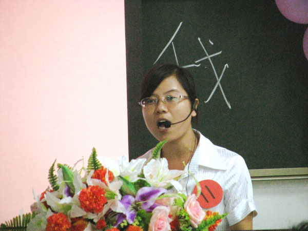比赛现场还播放了预先录制的视频,参赛选手的亲友团及班主任送上了深切祝福和希望,现场的加油声一浪赛过一浪。最终,付扬华同学以93.86的总分一举摘得桂冠,并荣获最佳台风奖。欧阳迪、刘翠云获二等奖,赵展、梁璐、崔超获三等奖。