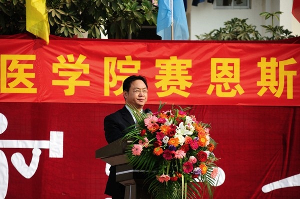 赛恩斯新医药学院党总支副书记、副院长梁天坚在开幕致辞中说:“院运会是赛恩斯新医药学院推行素质教育、发展体育运动、提高学生身体素质的重要举措,同时也是对赛恩斯新医药学院体育教学训练水平的一次大检阅,是展示赛恩斯新医药学院素质教育发展成果、展示大学生精神风貌的盛会。”希望全院师生努力把首届运动会办成一个团结的大会,奋进的大会,把赛恩斯新医药学院体育教育事业和全民健身运动推向一个新台阶。