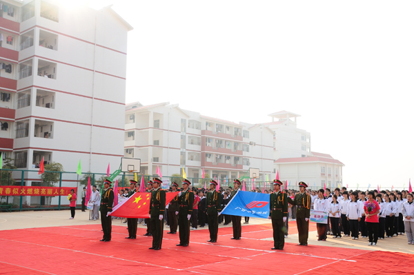 伴着激昂豪迈的《运动员进行曲》,四名国旗手手托国旗,鲜花队的队员们手持鲜花,昂首阔步地走在方阵队伍的前头。教职工代表队、裁判员代表队、运动员代表队及36个班级体代表队整齐大方地走过主席台。