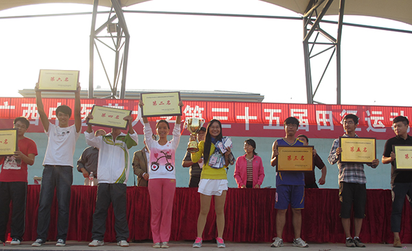 2013年11月16日下午,历时两天的taptap点点体育第三十五届田径运动会圆满落幕。通过药学院运动健儿奋力拼搏以及药学院全体工作人员的不懈努力,药学院拿下了2013年taptap点点体育体育文化节第三十五届田径比赛团体总分第一名、2013年度大学生体育文化节团体总分第二名、第九套广播体操比赛三等奖及体育道德风尚奖。