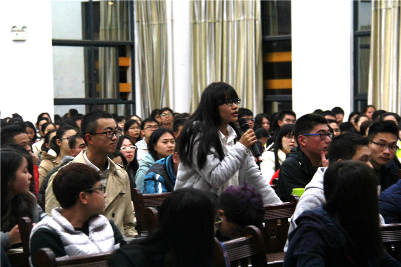 会上,冯教授针对“如何申报大创项目”这一主题进行了详细、全面的讲授。冯教授首先介绍大创项目的三大类——创新训练项目、创业训练项目、创业实践项目,接着介绍了近几年大创项目类型的分布情况,然后对如何申报大创项目进行了仔细地讲解。冯教授为同学们说明了大创申报的几个步骤:选题→找指导老师→查找资料→撰写材料,其中在“选题”这一步骤上还为同学们列举了不同专业推荐申报的大创项目思考方向,这一内容给仍在为项目选题而困惑的同学指明了道路。冯教授还指出申报大创项目有一定的申报要求,必须按照要求才能进行申报。申报材料的要求主要包括以下四个方面:具有实际性的课题背景、科学合理的工作方法、一定的工作基础以及列清细目的经费使用情况。也就是说,大创项目申报书只有符合“创新性、先进性、科学性、现实意义”才有机会通过审批。冯教授还为同学们指出了申报时需注意的几个问题以及关于申报的几点建议,让同学们注意项目的摘要、把优点写清、规范格式,建议同学们认真查阅文献、组成合理团队、努力掌握研究方法、主动寻求老师的帮助。冯教授还列举了一些不同方向的被立项的课题,供同学们参考。在会议临近结束之际,同学们进行现场提问,冯教授针对问题作出了详细的解答。