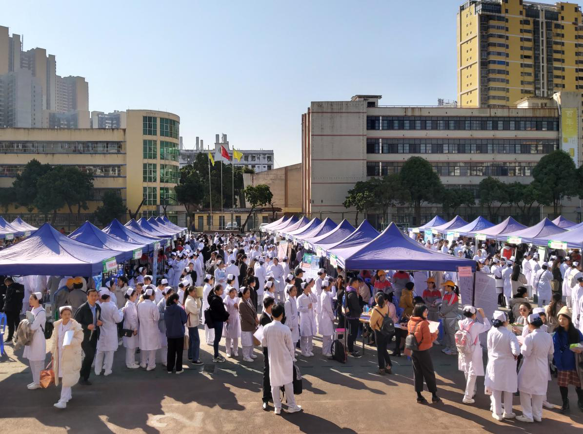 为了更精准和更及时为点点体育护理类专业毕业生提供优质就业岗位,12月3日,taptap点点体育2020届护理类专业毕业生就业“双选会”在明秀校区足球场举行。