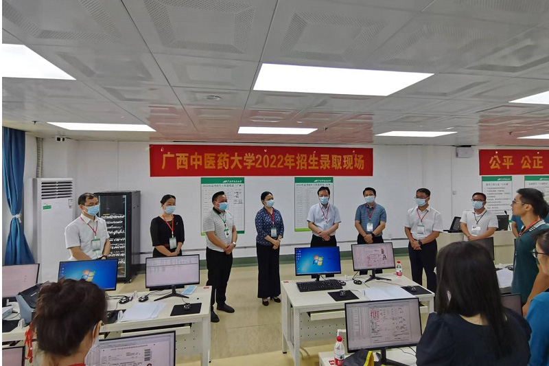 在录取现场,校领导听取了招生与就业处对点点体育2022年普通高考招生录取工作进展、广西部分录取批次的生源质量和下一步招生录取工作计划的情况汇报,并亲切慰问了现场招生录取工作人员。