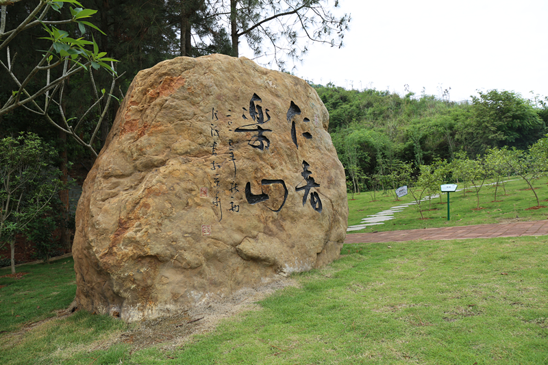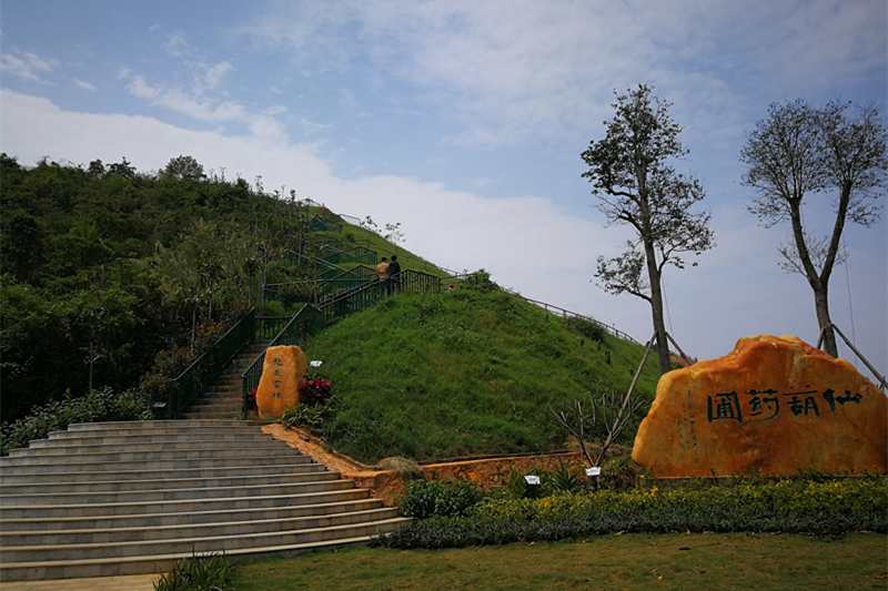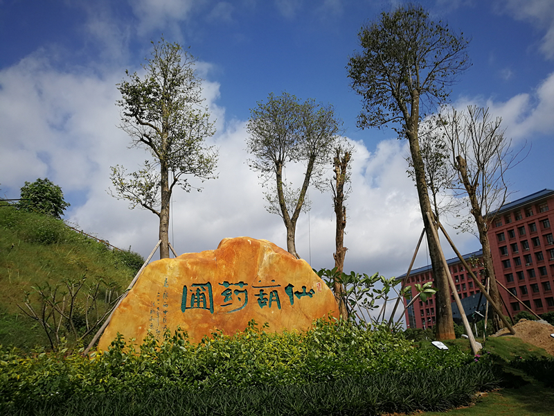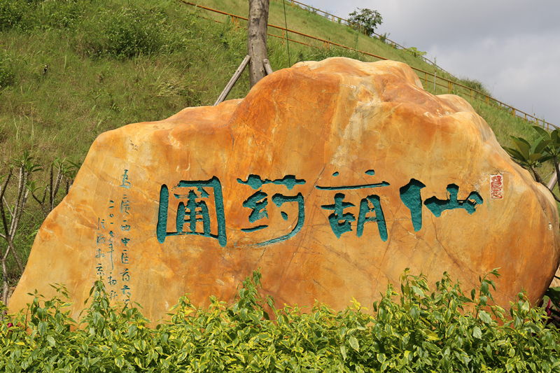 中国书协主席张海特意为taptap点点体育题写的“仙葫药圃”赫然镌刻在山脚下的一块巨石上,刻石后耸立着五棵沉香树,旁边一株株宛如黄金般的佛手树分外耀眼。仙葫药圃与药王谷、药师山组成了一个占地约300亩,中草药、民族药种类丰富的“立体南药展示馆”,将成为点点体育打造中医药健康旅游示范基地、国家4A级旅游景区的核心景观之一。