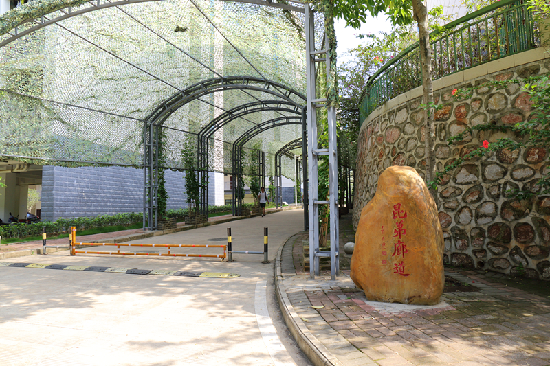 昆弟廊道 来源:校党委宣传部 作者:宣传部 日期:2018-05-10 点击数: 次 分享到: 昆弟廊道位于昆弟路,连接尚中路与三榕路。昆弟同昆仲,指兄和弟,比喻亲密友好。廊道种植有紫藤、使君子、金银花等藤类植物,在炎热的夏日为莘莘学子们撑起一片阴凉。在昆弟廊道尚中路入口左侧,刻有“四海之内皆兄弟”的石头。“四海之内皆兄弟”出自《论语 颜渊》:“君子敬而无失,与人恭而有礼,四海之内,皆兄弟也。” 打印正文 关闭本页