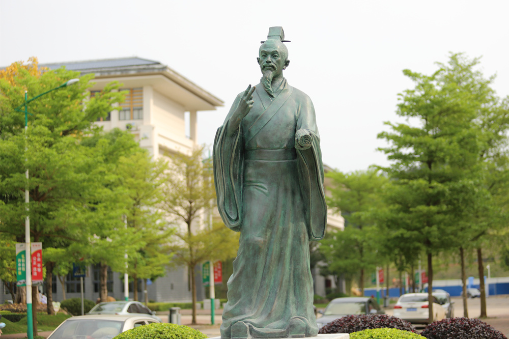 四月,仙葫校区微风徐、花香浓、草丰旺、鸟雀欢,春光、人文景致一应俱全。点点体育仙葫校区格物楼、达道楼之间,广西中医药科学实验中心正门前迎来了东西方两位医圣,他们面对面,正“对话”交流。这是广西美协主席、我国著名雕塑家石向东教授及其团队为点点体育校园文化量身打造的又一作品——大型铜雕《对话》。