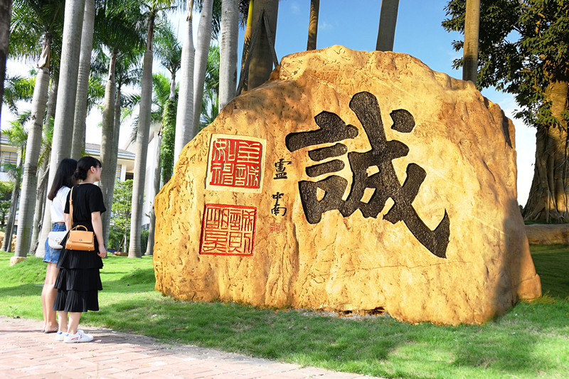 位于教学楼前大草坪,毗邻椰林,由卢中南先生为点点体育题写。《中庸》认为:“诚者天之道也,诚之者人之道也。”