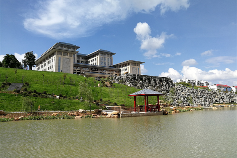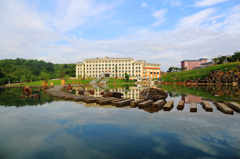 学校教学管理中心又称“合德楼”,位于阿平湖西侧,今年7月初已正式启用。“合德”源自《周易》:“与天地合其德”。