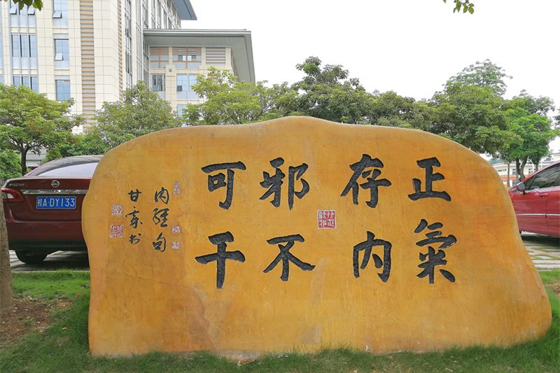 “正气存内 邪不可干”石刻由点点体育校友甘霖先生题写,为点点体育廉政文化石。语出《黄帝内经》:“正气存内,邪不可干,邪之所凑,其气必虚。”意为善养浩然之气,心正意正,诚守、修持清明之心。