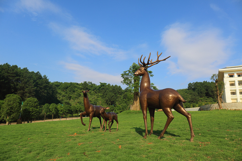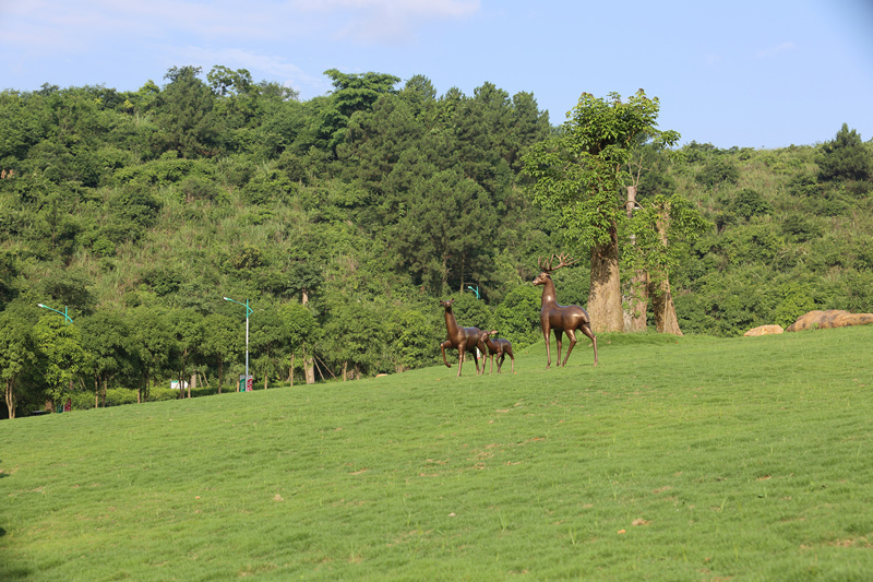 如茵的草坪之中,树下萋萋芳草与呦呦鸣鹿相映成趣,为阿平湖景区增添了无穷的诗情画意。