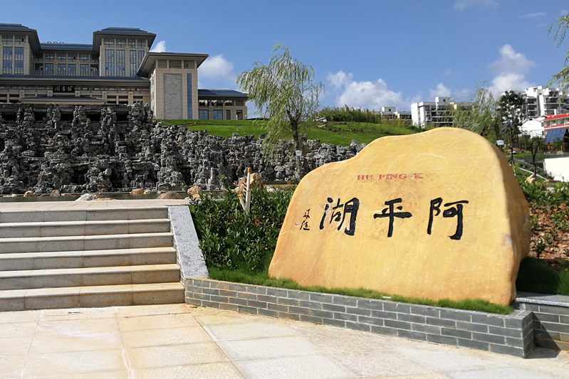 位于阿平湖畔、仲景广场北面,巨石形制周正,大气磅礴。