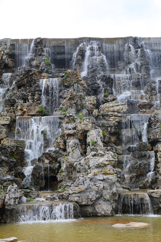 近日,瀑布成功试水,即将竣工验收。整个瀑布约20米的地势高差,宽幅30余米,在瀑布前方的水面上建有观景曲桥,可近距离欣赏瀑布“飞流直下”。
