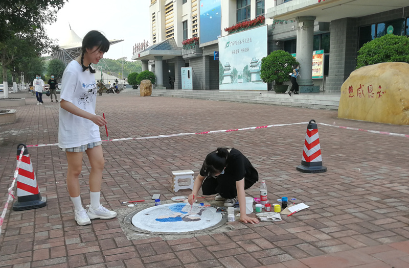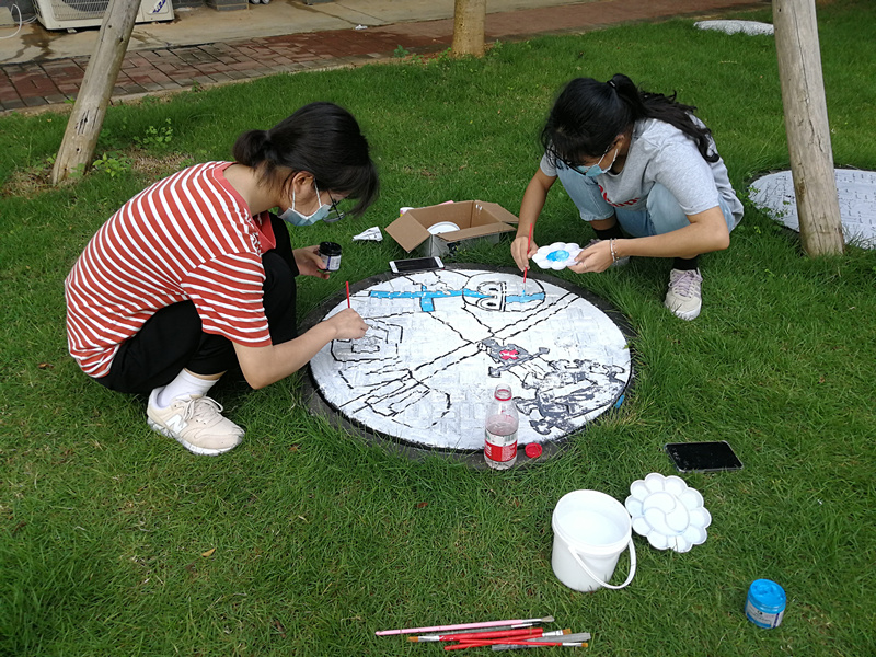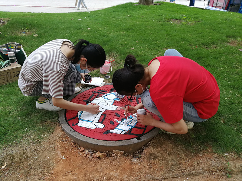 井盖挥豪传情 致敬白衣天使 点点体育举办首届校园井盖涂鸦大赛
