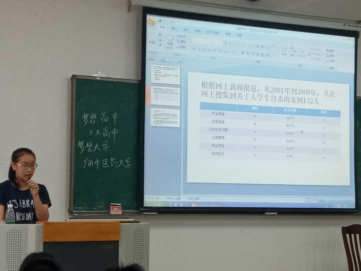 “生命如夏花之绚烂”,这是诗人泰戈尔对生命的诗意赞美,但在现在的青少年中,对生命漠视的现象越来越多。大学生正处于青春期,心理不够完全成熟,感情比较脆弱,思维时常带有片面性和表面性,做决定往往很冲动,不计后果。为了引导大学生珍惜生命,热爱生命,抵抗挫折,以积极乐观的心态去克服困难,收获生命成长的幸福。2018年5月13日,2016级药学三班于教学楼1-206教室成功举行以“活着与梦想”为主题的心理辅导活动。