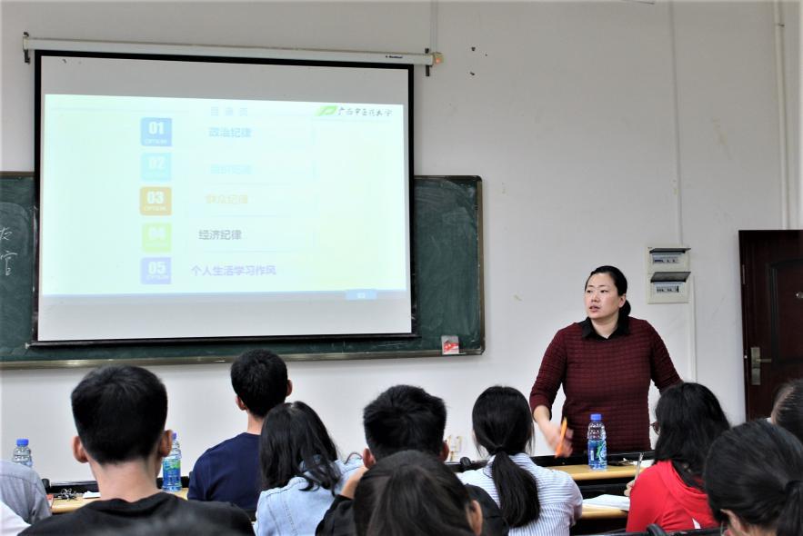 教育会上由黄鑫老师要求学生干部言行要积极向上,具有正能量,更要对自己的言行举止负责,并从政治纪律、组织纪律、群众纪律、经济纪律和个人学习生活作风五个方面,对药学院学生干部的行为提出规范要求,特别强调了学生干部要做“青年之友”,不能做“青年之官”,保持学生干部的群众性,时时刻刻维护好组织、学校以及党的形象。接着,药学院学工办主任凌勇威老师就“意识形态”问题提出希望:学干们在工作中就有关敏感问题上要及时上报,做好报备工作,按程序行事;在思想上高度注意,时刻注意自己的学干身份及影响;规范自身纪律与作风,获得同学们的认可与支持。最后,药学院党委副书记李豫萍老师补充并强调了语言的积极性,同学们所说的话要传递正能量,身为学干,在工作上及时汇报,需要主动、有责任心,更要加强自身建设,带动新一届委员的发展。