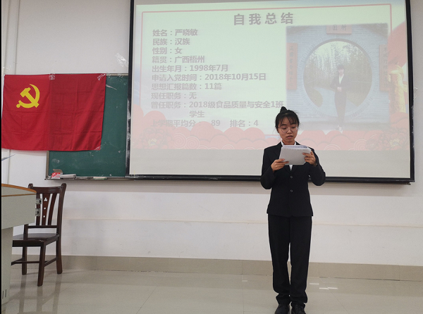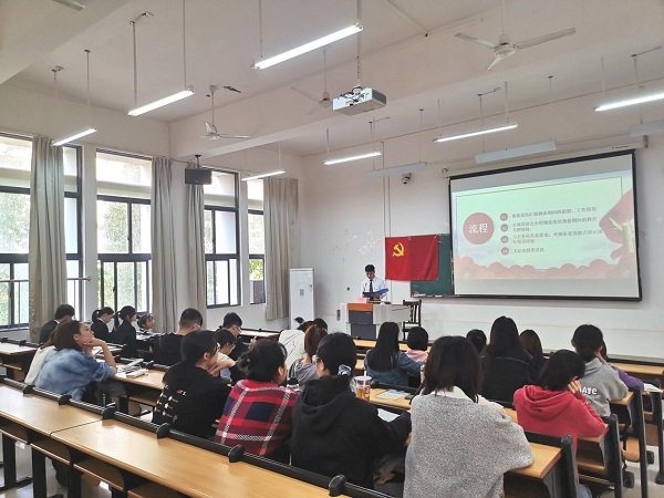 12月10号下午,药学院食品学生党支部在仙葫校区教学楼2-203教室顺利召开讨论预备党员转正支部大会。大会由组织委员莫麟主持,支部35名党员参会。