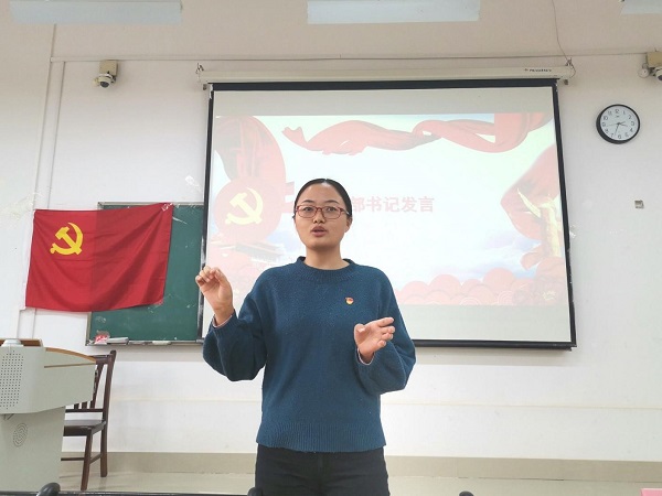 “组织上入党一生一次,思想上入党一生一世”,支部书记孙慧玲希望支部党员将这句话烙印在心中。她指出:“每位党员应具有强烈组织意识、身份意识、集体荣誉感,以思想作为行动的先导,加强自身理论学习,关注国家时事、国际动态,做到思想上真正入党”。此外,支部书记孙慧玲还鼓励即将考研的毕业生党员调整好心态、保持信心、稳住心神。
