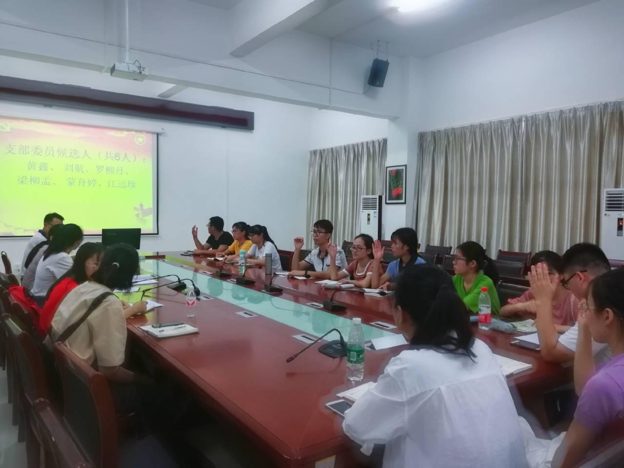 会上,党支部讨论并表决通过了《药学院学生党支部委员选举办法》(草案),我们通过差额选举的办法,推选出候选人建议名单,监票人、计票人建议名单;然后发放选票,根据无记名投票选出新一届党支部委员。经全体党员投票,现场计票,黄鑫、刘航、罗柳丹、蒙舟婷、梁柳孟同志当选为药学院药学学生第二党支部委员会委员。