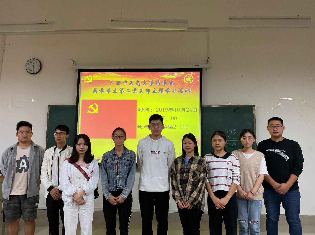 药学院药学学生第二党支部第六学习小组于2019年10月24日星期四晚上17:00-17:45在仙葫校区2-110开展了“不忘初心、牢记使命”主题教育学习交流会,会议由卢军全同志主持 ,邀请了药学院2018级辅导员刘航,共有1名党员、1名预备党员和7名入党积极分子参会。