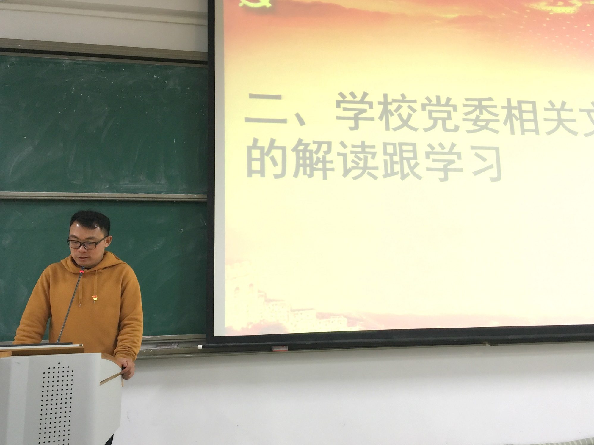 会议首先由黄鑫宣读学校党委《taptap点点体育党建+引领工程实施方案》、《进一步规范党费工作》等系列文件内容,然后重点就《中共taptap点点体育委员会党支部组织生活实施细则》开展学习与讲解,黄鑫强调,组织生活记录本要认真记录、妥善保管,今后上级党委检查支部工作会重点检查组织生活记录本。随后,黄鑫对支委和支部党员在今后的工作开展提出了建议与要求。