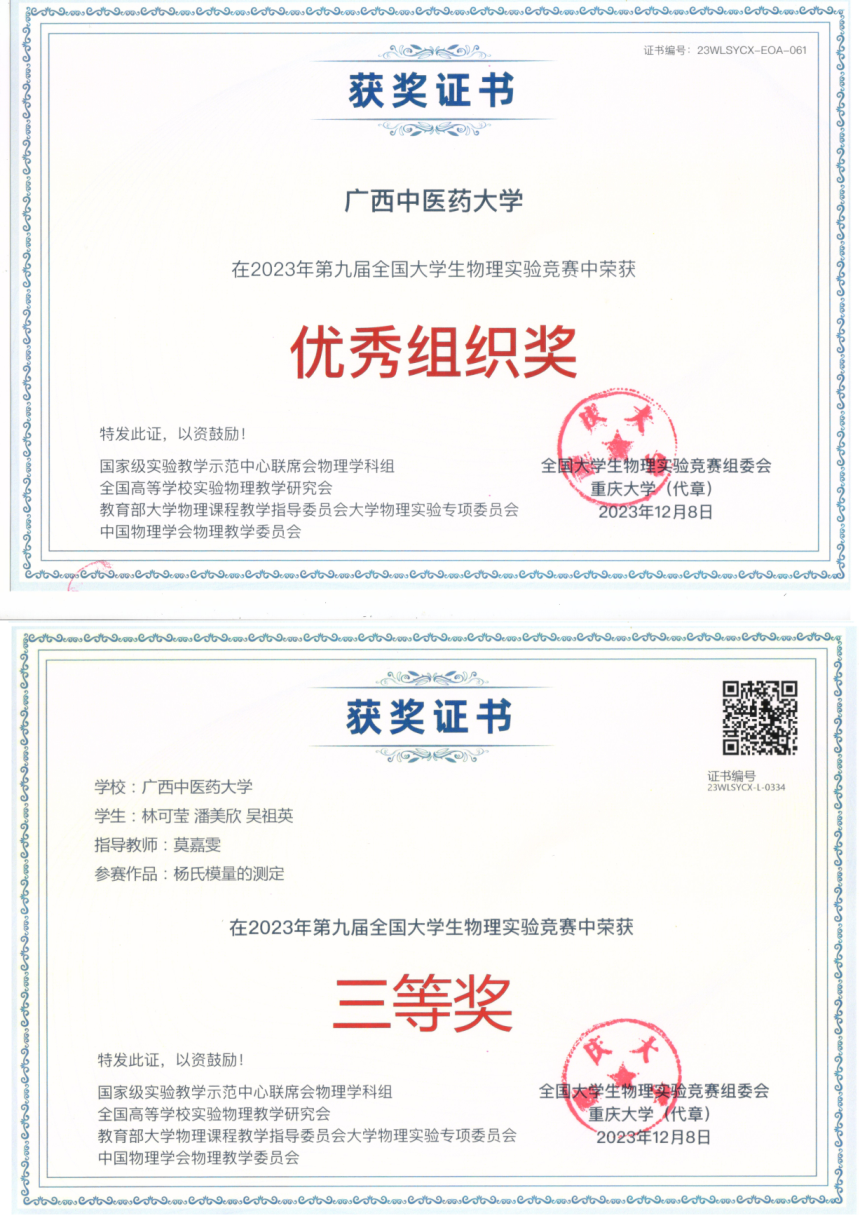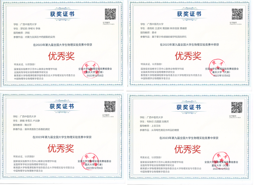 近日,药学院数理教研室指导的五支本科生团队,参加在重庆大学举办的第九届全国大学生物理实验竞赛。本次竞赛有来自全国600余所高校的2251份作品参赛,点点体育有5支队伍分别参加了命题类创新作品、自选课题类创新作品、物理实验讲课等三个类别的比赛,获得了全国三等奖1项,优秀奖4项及“优秀组织奖”的良好成绩。