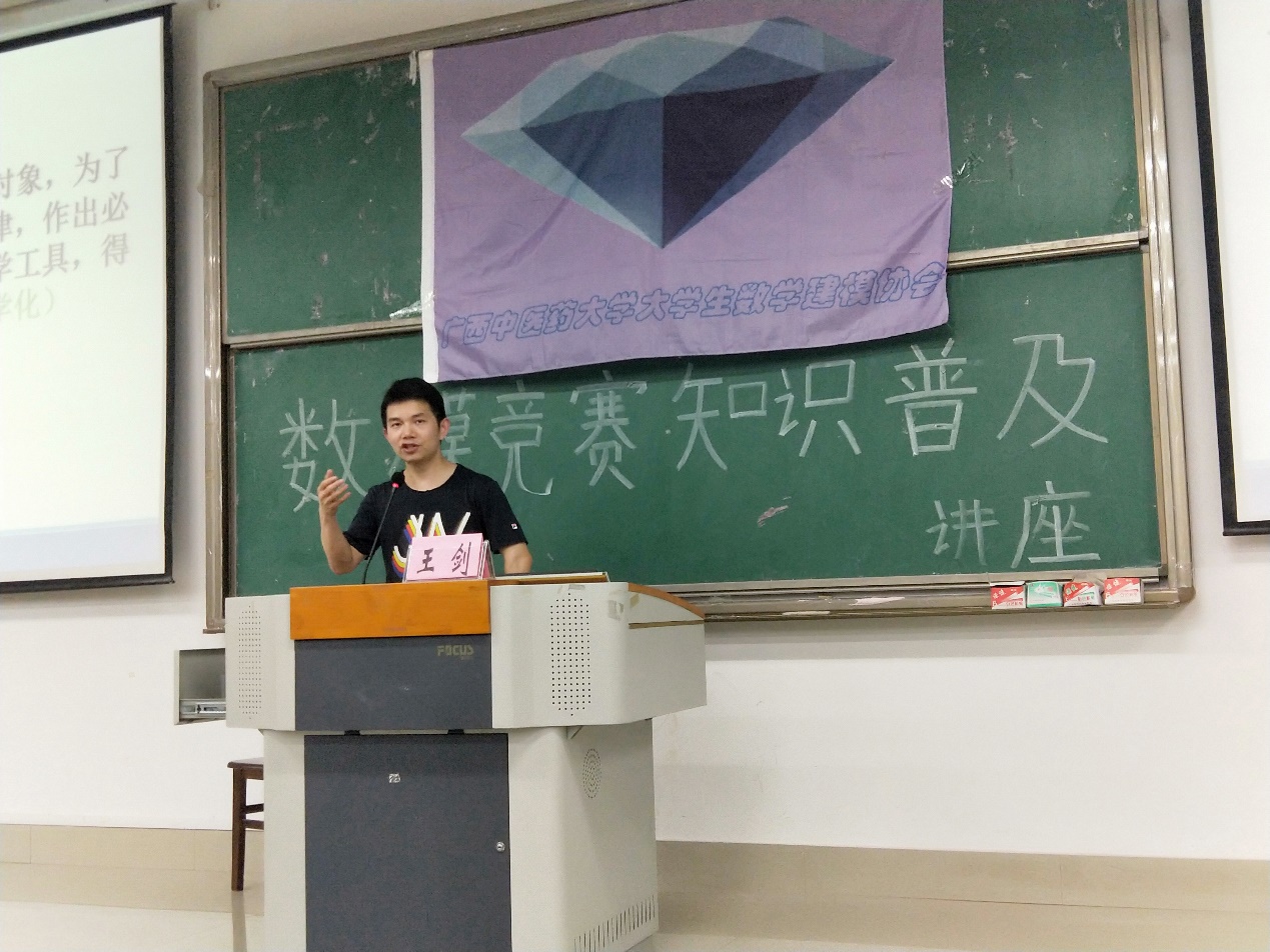 5月13日晚上7点,数学建模竞赛知识普及讲座在仙葫校区1-201教室举行,讲座由来自药学院数理教研室的王剑老师主讲,来自全校各专业的200多名大学生参加了讲座。
