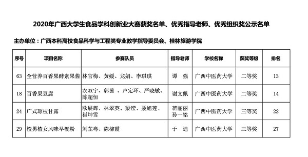 【喜讯】热烈祝贺药学院在2020年广西区大学生食品学科创新创业大赛中喜获佳绩