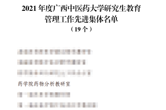 药物分析教研室喜获2021年度研究生管理荣誉 发布时间:2023-01-06 12:09:21 浏览次数: 次 【字体:小 大】 在教研室主任梁洁老师的带领下,经教研室全体教师的共同努力,药物分析教研室积极开展研究生教育管理工作,为社会输送了一批优秀的硕士研究生,荣获taptap点点体育2021年度研究生教育管理工作先进集体荣誉称号。 图1 taptap点点体育2021年度研究生教育管理工作先进集体名单截图 分享到: 【打印正文】