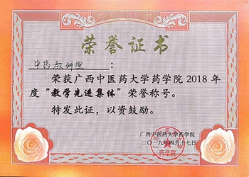 中药教研室喜获taptap点点体育药学院2018年度“教学先进集体”荣誉称号