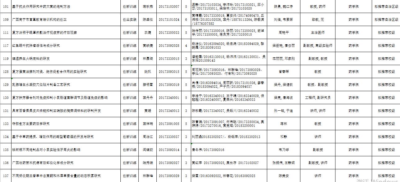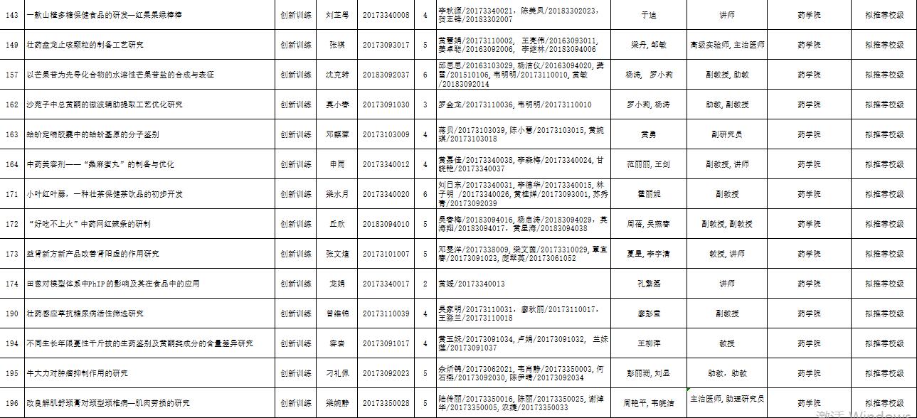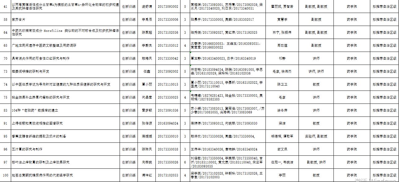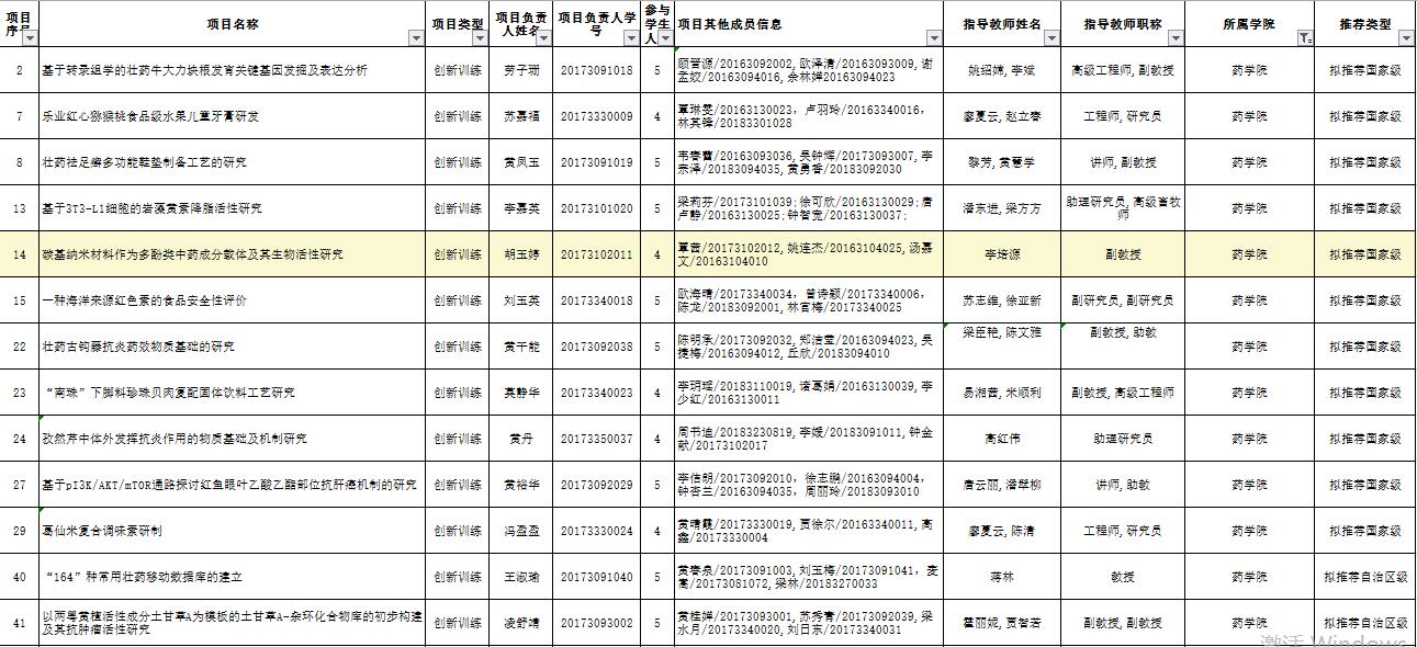 taptap点点体育全校共立项210项,药学院立项57项,其中拟推荐国家级11项,拟推荐自治区级17项,拟推荐校级29项,药学院2019年大创项目人才辈出,立项喜获大丰收,祝药学院越办越好!