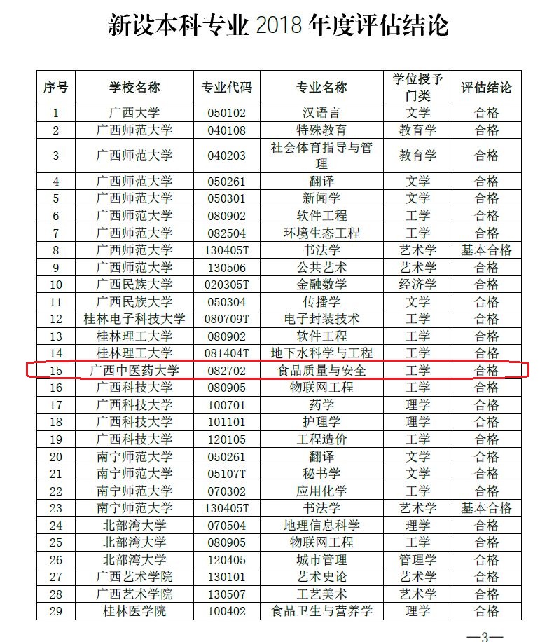 近日,自治区教育厅近日公布了2018年新设本科专业评估结果,药学院食品质量与安全专业顺利通过新专业合格评估。