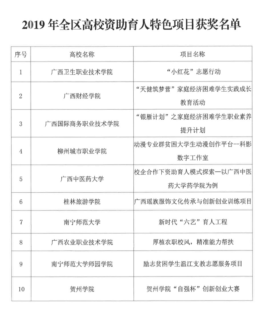 【喜讯】药学院荣获全区高校资助育人特色项目 来源:药学院 作者:王宗耀 发布时间:2019-12-30 17:32:59 浏览次数: 次 【字体:小 大】 近日,2019年全区资助育人项目和工作典型案例评选获奖名单已由广西壮族自治区教育厅公布,我院申报项目“校企合作下资助育人模式探索——以taptap点点体育药学院为例”荣获2019年全区高校资助育人特色项目的称号。 谨此祝贺我院今年在资助育人方面取得的成绩,希望全体项目人员认真总结申报经验,推动我院“三全育人”工作再上新台阶。 分享到: 【打印正文】