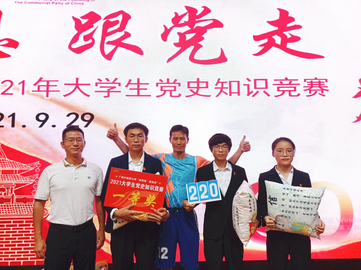 比赛中,代表药学院出战的三位同学:张启江、庞超林、凌玉妙凭借扎实的党史理论知识和过硬的心理素质从必答题、抢答题、风险题三个环节中脱颖而出,最终以220分的成绩获得了全场最高分,摘得了本次比赛的第一名,展现出深厚的党史知识功底。