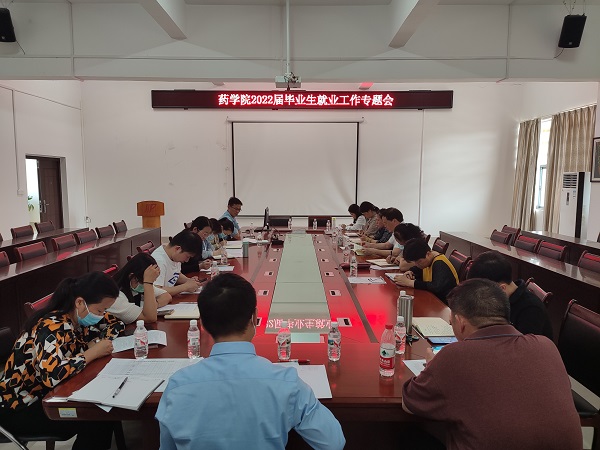 为了进一步做好2022届毕业生就业工作,药学院4月14日上午9时在达道楼A4O5会议室,召开2022届毕业生就业工作专题研讨议。药学院党委书记蒋林,副书记李豫萍,副院长卢汝梅、秦华珍及毕业班辅导员、班主任等近20余人参加了会议。