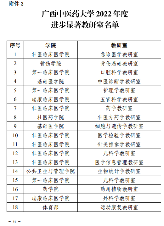 图2 2022年度进步显著教研室公示名单