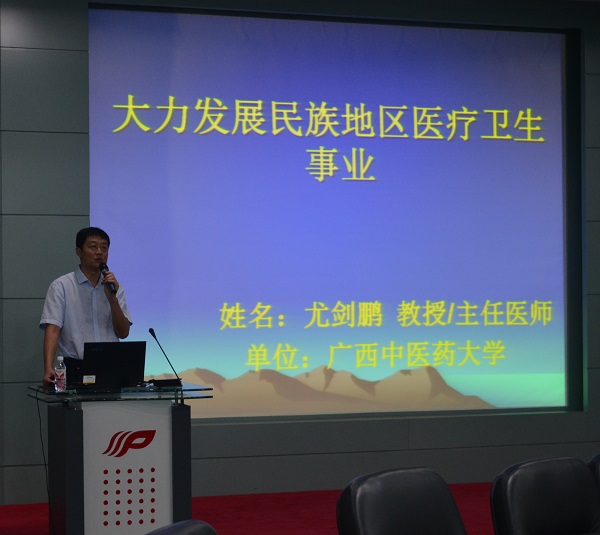 开班仪式上,尤剑鹏向培训班的开班表示热烈祝贺,向各位领导、各位嘉宾、各位瑶医药、民族医药专家的光临指导表示衷心的感谢,向全国各地远道而来瑶医药学员表示热烈欢迎。尤剑鹏指出,本次培训班是解决恭城县瑶医药人才短缺问题的重要举措,必将对推动恭城县瑶医药发展,乃至全国的瑶医药发展产生重要作用,希望各位学员珍惜这一难得的机会,在学习中交流经验,共同提高,相信通过taptap点点体育雄厚的师资力量,对提高各位学员的自身素质和业务技能会大有帮助。尤剑鹏还以《大力发展民族地区医疗卫生事业》为题给学员们上了第一课。
