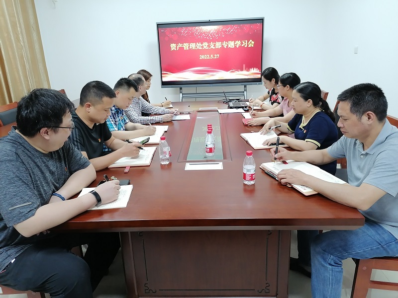 5月27日下午,资产处党支部在合德楼233室召开支部大会进行专题学习,资产管理处全体党员参加会议,会议由党支部书记钟勇主持。