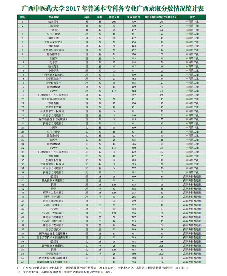 taptap点点体育2017年普通本专科各专业广西录取分数情况统计表