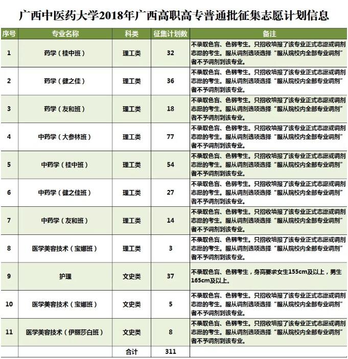 点点体育此次将征集广西高职高专普通批缺额计划311名,其中文史类50名,理工类261名,详情如下: